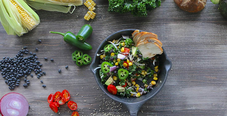 Chicken breast | avocado massaged kale | jicama string | corn black bean | quinoa | pico de gallo pickled jalapeño CHIPOTLE CREMA + CHIA LIME VINAIGRETTE
